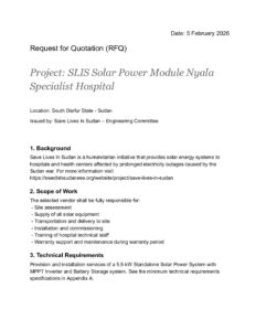 SLIS Solar System Module Nyala Teaching Hospital RFQ 2026-2